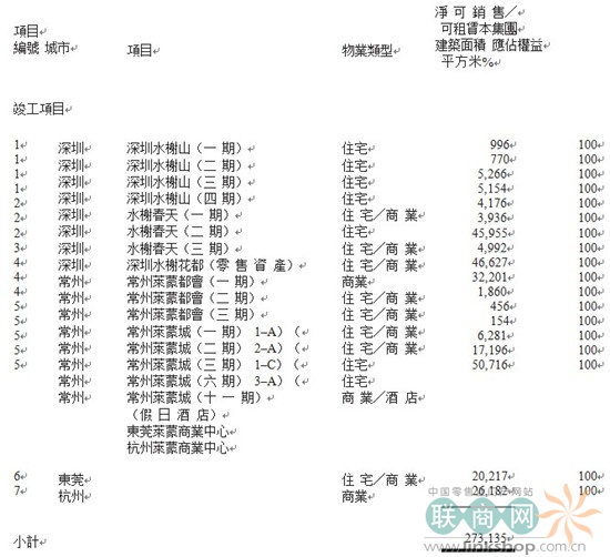 集团于7个城市拥有14个项目,净可销售及租赁土地储备约为3,900,000 平方米,平均成本为每平方米约2,311.5 港元。