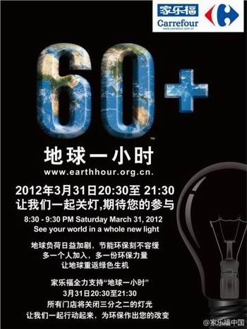 联商网消息:2012年是全球最大的环保活动——“地球一小时”登陆中国的第四年。3月31日当天,家乐福在华的204家门店将积极参与。