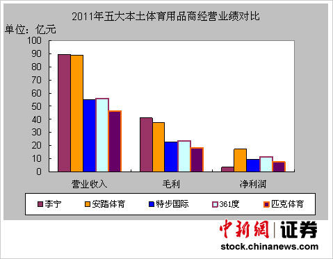 安踏2011年实现营收89.04亿元,仅比李宁少2500万元,但安踏营收却同比增长20.2%。同时安踏净利达到17.3亿元,远超李宁的3.86亿元,居五大本土体育品牌之首。