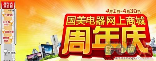 国美网上商城采销总监张冰透露,4月1日-6日当当国美电器城将举行售价再9折的促销活动,掀起第一波促销浪潮。另据透露国美网上商城周年庆也将在4月1日正式启动。