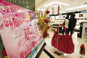 清明假期已至,天津各大商场纷纷举办了各类促销活动以丰富节日市场。记者在滨江道商业街看到,“婚庆节”、“生活节”、“踏青休闲节”等特色主题促销活动搞得热闹非凡,吸引大批市民前来采购。图为某商场举办的“婚庆节”。