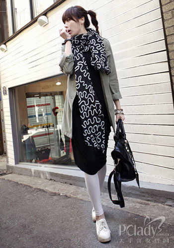 风衣款式贴身简洁即可,色彩以米色军绿为佳,领口系上一条印花围巾,就可以成熟优雅得一如明星,而白色的紧身裤则是风衣扮成熟不可替代的法宝。
