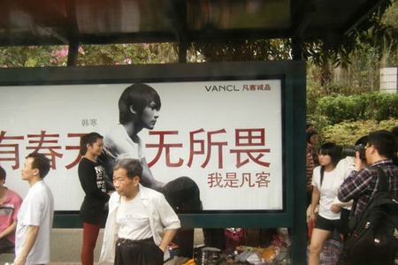 上周末答案揭晓,凡客与著名作家、车手韩寒续签代言合约。同时,凡客在京、沪等10个重点城市发起一波猛烈的户外广告推广,灯箱遍布街头、地铁,韩寒在上面略带微笑地说“有春天,无所畏”。