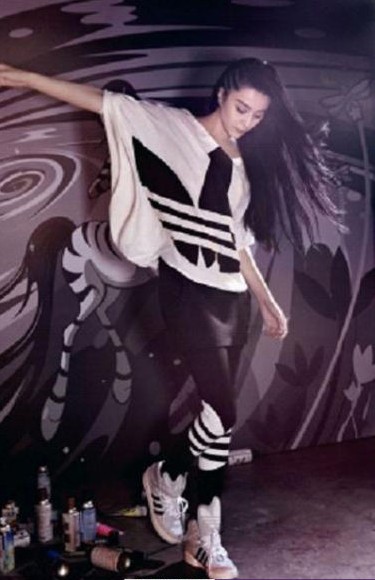 其实这身运动装外形也不算特别,特别之处在于阿迪标志的运用。夸大的标志和膝盖和鞋子的呼应很有节奏感,鞋子的细节设计也很出挑。想要运动装不单调,细节上一定要花心思。