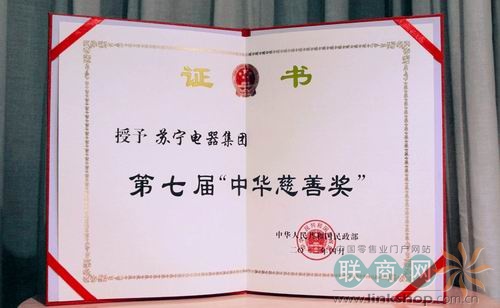 随着连锁事业的发展,苏宁的公益活动也深入各地,具备了活动影响力大、持续性和创新性强、公信力好的特点。正是基于上述方面的优异表现,苏宁电器继2008年、2010年后,再度荣获“最具爱心捐赠企业”,也是40家获奖企业中的唯一零售企业。4月10日上午,苏宁电器副董事长孙为民作为获奖企业代表受到了中共中央政治局常委、国务院副总理李克强等党和国家领导人的亲切接见。