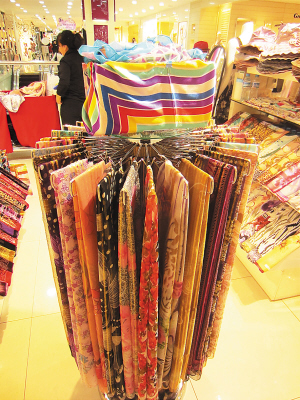 目前很多商场主打的是婚庆牌,中原百货的床品特卖是此时的一大特色,滨江商场的美妆产品,劝业场的新娘妆和妈妈妆等都是此时各自的特色,乐宾百货更是在卖场一层入口的走廊设置了一道道粉色纱绸包裹的拱形花门,并在地面上铺起红毯,打出“婚庆全套服务”的标语,粉色花环和布置让商场的婚庆色彩登时浓上几个色度。