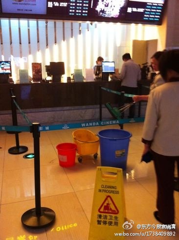 4月24日下午,郑州突降暴雨,城内的积水问题立即成为市民中的热点话题。微博上传出中原万达影城内漏水的图片引起网友热议,中原万达影城方面表示,售票大厅漏水是因为空调进风口未关闭,不影响市民的正常观影活动。