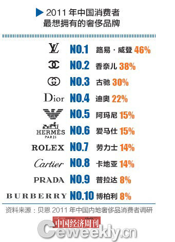 “中国奢侈品消费占全球市场份额从1998年的不到1%到2010年的10%,12年间增长了10倍。在接下来的5年,仍将高速增长。”3月22日,2012博鳌论坛上发布的《亚洲经济一体化进程2012年度报告》中如此描述。