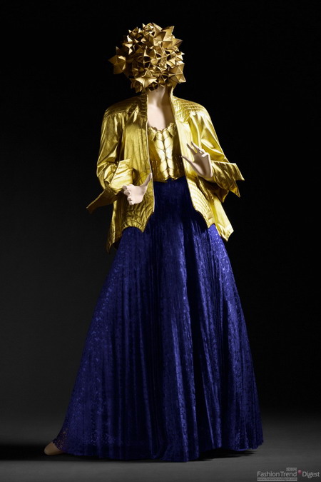 10. 金色皮夹克, 紧身胸衣和紫色花边裙, Ossie Clark, 1971
