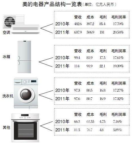 其次,美的电器的产品结构也有了一些变化,利润率较低的品种比例呈下降趋势。这一点在2011年报中已经有体现。