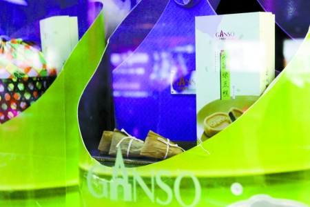 一品牌粽子装在绿油油的大“竹筒”里展示 河南商报记者 赵卓 实习生 唐勇军/摄