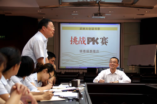 他要求温州银泰百货所有员工每月都要读一本管理类书籍,并将读后感与同事分享。在他的倡导下,公司每个月定期举行“读书漂流会”。为了调动各职能部门的工作积极性、活跃工作氛围,他还让企划部专门策划了“武林大会”,各个职能部门取一个武侠帮派的名称,员工把头像照片PS成各路武侠高人,贴在员工走廊的宣传栏里,然后部门和部门之间进行工作上的PK,名曰“比武”。“职能部门的工作比较枯燥,重复劳动很多,做久了容易让人疲倦,搞搞这样的‘武林大会’,能让大家觉得开心一点。”