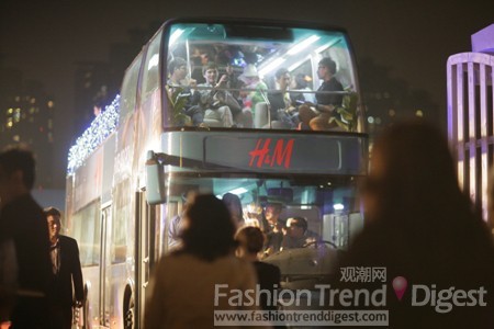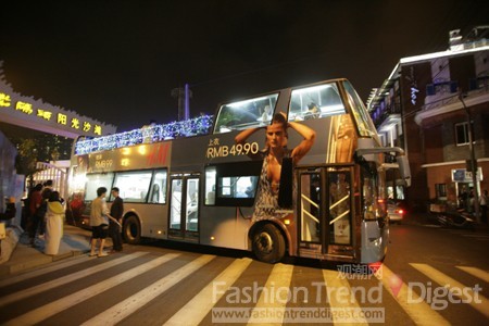 派对中,H&M安排了现场来宾登上H&M夏日巴士,巴士整体装饰以热带风情沙滩海洋风格为主,一层为展示区,展示了H&M夏季主推的for water系列、泳装系列和盛夏系列;更有热门ipad试衣软件,让大家玩不停。巴士二层为时尚派对区,H&M特别提供了可爱比基尼小饼干和七彩棒棒糖,车身印有H&M夏日巨幅海报,已经在上海街头刮起了一股夏日风潮,达人们跃跃欲试,排队等候登陆巴士一探究竟。外滩的绮丽美景,悠扬凉爽的夏风微微吹拂在脸上,大家都非常享受夜游上海带来的舒心感受。