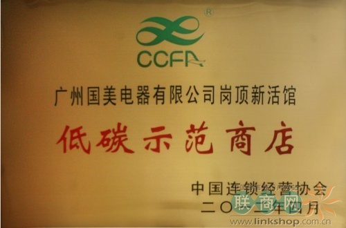 国美在低碳节能方面的领先性再次受到权威机构的认可。近日,中国连锁经营协会(CCFA)发布“百家低碳示范商店”名单,国美电器集团旗下北京国美马甸新活馆店、北京国美北太平庄店、广州国美岗顶新活馆、上海永乐漕宝新活馆、大中电器中塔新活馆、大中电器望京国际商业中心店六家门店凭借在门店低碳运营、低碳产品销售、员工培训等方面的卓略表现被评为“低碳示范商店”,国美入选门店数量居家电零售企业榜首。