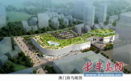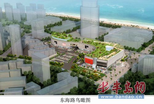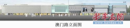 根据规划,用地范围东南侧新建五层商业建筑,澳门路增加一处后勤及消防出入口。另外,将东海路加油站迁移,原加油站用地统一规划建设绿地和停车位。