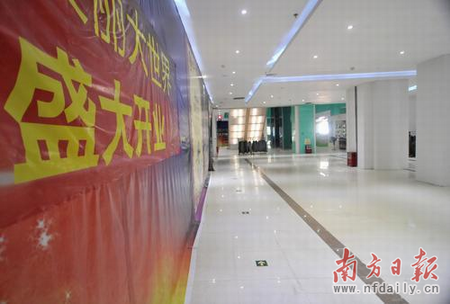 “五一”小黄金周是各大商场“捞金”的好时节,在惠州市区麦地下埔一带各大商场人满为患,唯独新开业不久的美丽大世界购物广场仍然门可罗雀。