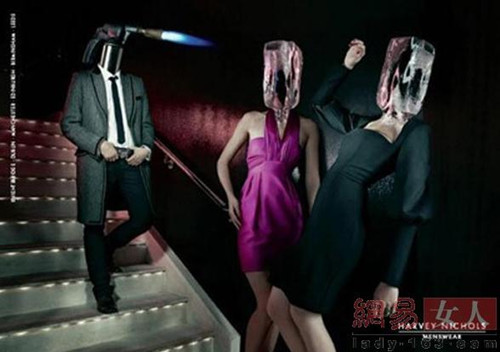 2006年的男装、女装广告 Harvey Nichols 2006年的男装、女装广告也极其令人难忘。服饰带来的性吸引力被形象地比喻成一种致命的危险。
