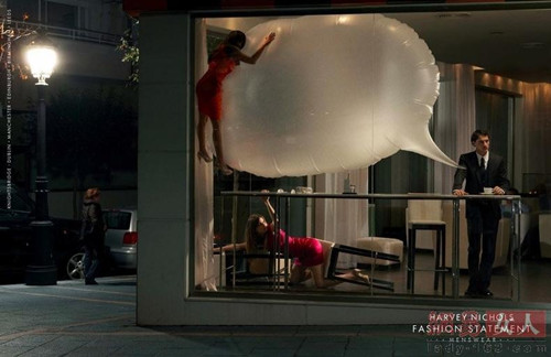Harvey Nichols (哈维?尼克斯)是英国高级百货公司品牌,最近在打折,看这些模特都被拥挤的人群吓成什么样了!