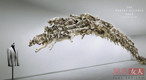 密集爱好者Harvey Nichols新一季的广告是的衣架,一群狼蜂拥而至。