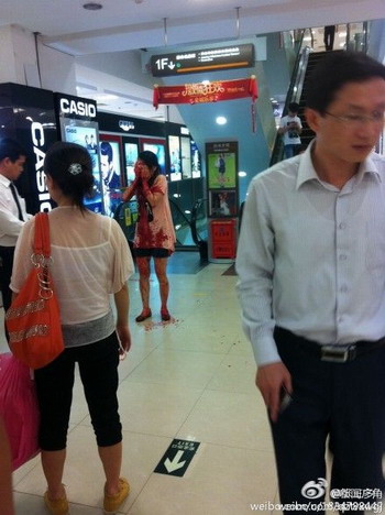 记者根据现场多名店员的叙述,砍人者在二楼两家拉夏贝尔店内外连续砍伤四人后,一路由二楼冲上三楼,慌不择路,正好撞见一个打算试衣服的顾客,不由分说扬刀就砍。砍伤五人后,砍人者把刀扔在三楼,往楼上逃窜。拉夏贝尔一名怀孕的店长被砍伤。