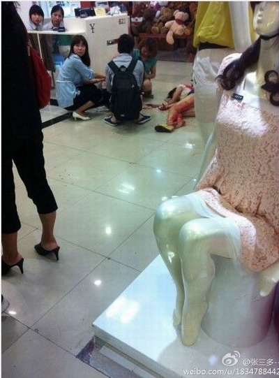 据目击者@傻傻傻_莎称事发在泉州大洋二楼女装柜,她被吓得腿软。