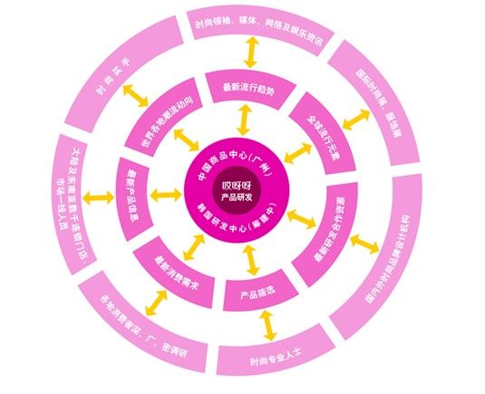 显然,产品开发绝对不能盲目运作,为实现持续的产品快速更新,哎呀呀通过网络、媒体、娱乐、时尚买手等获取最新的流行趋势,网罗世界各大都市的时尚买手为其所用,时刻掌握世界各地的潮流动向;再收集整理直营店、加盟店以及市场一线人员反馈的最新产品信息,汇总到产品研发中心,由其根据各自市场的特定需求,有针对性地作出改进,设计出最适合本土市场的时尚饰品。此外还有一个重要的环节——产品筛选。由专业人士从上千种新品中筛选出上百种的新款产品,均要具有全球流行元素,符合市场潮流和消费者对快时尚的要求。更为严格的是这些新品每7天凡低于4万个采购量就会被淘汰。