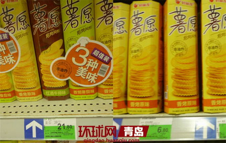 家乐福新兴店工作人员告诉记者,“三连包”薯片一直标价21.8元,零售装之所以标价6.8元,是因为端午节搞促销,预计25号左右会恢复原价8.1元。