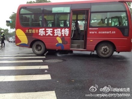 杭州萧山乐天玛特班车撞倒行人 伤势严重