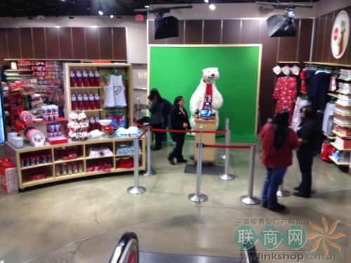 如果你不想花太多的钱,那也不打紧,在一楼门口还有一只超大的可口可乐北极熊,可以免费让顾客坐在北极熊怀里拍照,是不用花钱又有趣的纪念品。