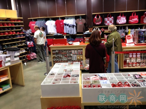 位于MGM饭店附近的“可口可乐商品专卖店”共四层,里面的商品从玩具、文具、围裙到服装、台灯、饰品,所有的东西都印有“可口可乐”的商标、吉祥物及历史故事。虽然说可口可乐是十分大众化的饮料,但其衍生出来的商品有些还是比较贵的,比如说,一组可口可乐造型的国际象棋或者配有手工珠链的可口可乐造型挎包,都要五六百元甚至上千元才能买得到,不过,其精巧可爱的造型、细致的做工,实在叫人爱不释手。