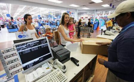 据称,沃尔玛超市的交易中,信用卡支付的只占到15%,其余则是现金或借记卡支付。