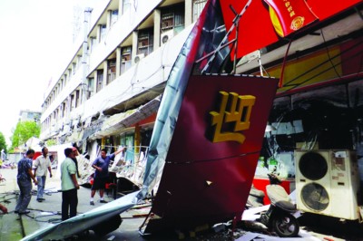 值得庆幸的是,由于事发凌晨,当时没有人经过,所以未造成人员伤亡。马鞍山市市容局相关负责人告诉记者,该局将拆除商场檐廊,重新给底楼商店统一制作招牌,将门头直接安装在建筑外墙面上。