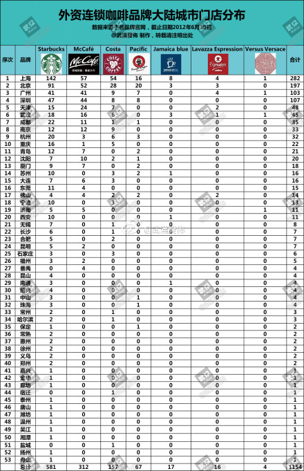 主题:【外资连锁咖啡品牌大陆门店分布数 】