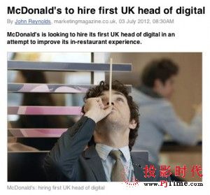 据报道称“麦当劳数字标牌计划已经进入招聘过程了,成功的申请人将展开监督英国麦当劳餐馆的‘数字化’,包括多头订购和最新的支付技术”。