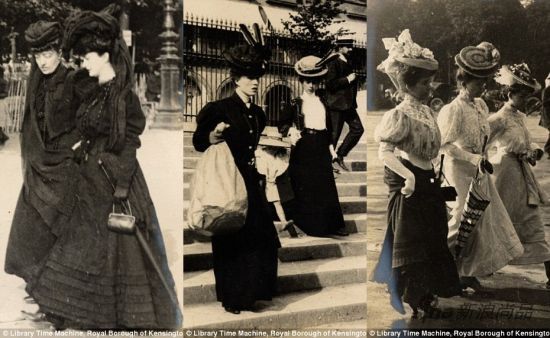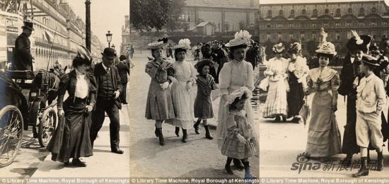 巴黎街头时尚:这组照片摄于萨姆伯1906年的巴黎之行,照片中可见女人、男人和孩子