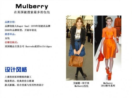 导语:2012伦敦因为奥运会必然会成为吸引全球游客的热门城市,来到时尚大都市伦敦,欣赏一番独具英伦风的英国五大本土品牌。