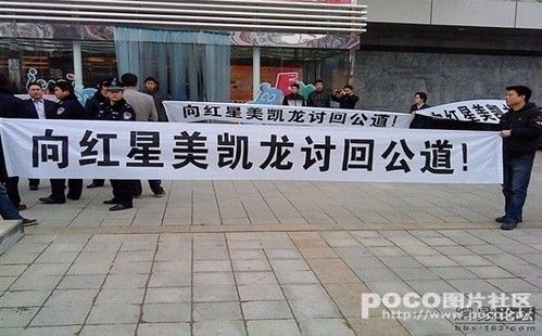 7月29日下午14:30左右,记者在位于北京东四环大郊亭桥附近的红星美凯龙商场门前看到这样雷人的一幕:一支手拿灭火器、身着消防服、头戴消防帽、并不时有人挥舞着大幅着火图片及“红星美凯龙盲目扩张,背后害死无数经销商!”条幅的队伍,在商场门前来回徘徊,引来无数群众围观。仔细看去,这绝不是一场名副其实的消防演习!