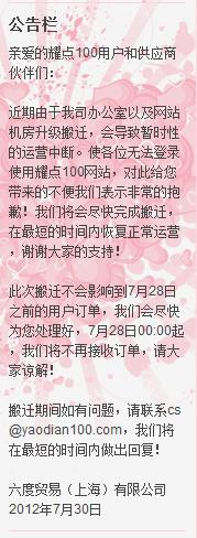 7月31日消息,国内时尚百货B2C网站耀点100近日公告称,因办公室和机房升级搬迁,暂停网站运营,且7月28日起不再接受订单。在各大综合性电商平台大打价格战之际,中小电商生存状态变得愈加困难。