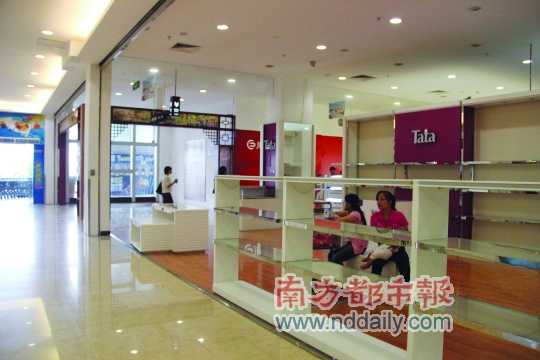 记者于8月12日至13日期间走访太阳城购物中心,发现购物中心内人气鼎盛,丝毫不亚于大信新都汇等城区旺场的客流量,但已有大量如T A T A、N IK E等专柜撤出,货架上空空如也,而火爆的店铺多打出“清货”、“打折出售”等字样。小陈(化名)是鳄鱼恤专门店的一位销售人员,正在现场以3折的价格处置一批行李箱。“摩根百货的老板跑路了,这里要求我们搬出去,我们只能趁这个星期尽快出货,减少运费等损失。”她告诉记者,自己已工作了近2年,第一次见到这么庞大的客流量,平时商场人气一般,没想到遭遇撤店的命运,物业方要求他们于15日之前撤场,但之前积压的货款却没有下落。