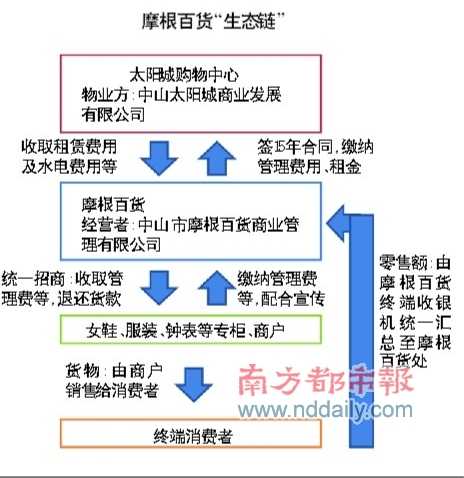 “太阳城摩根百货等百货公司中小商户”生态链里,只要中间环节出现问题,将影响上游及下游的利益
