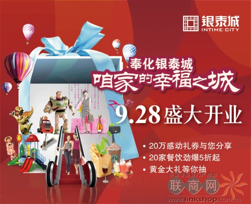 承载着奉化市民的深厚期盼,奉化首个一站式购物中心“银泰城”计划于9月28日盛大开业,迎来“瓜熟蒂落”的美好时节,为期盼已久的奉化市民揭开神秘面纱,届时将举行持续2日的盛大开业庆典活动和超大力度的优惠促销。