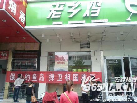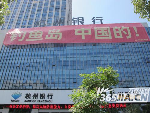 据了解,不仅仅是超市,一些银行和餐馆的门前也涌现了表述此意的横幅,并且非常惹眼,譬如老乡鸡连锁快餐店门前,挂起了“保卫钓鱼岛 捍卫祖国尊严”的横幅,来来往往经过的市民都用笔在上面签名;政务区的杭州银行大楼外立面上,挂起了巨幅写着“钓鱼岛 中国的!”,同时在旁边的天鹅湖万达广场发放保钓宣传单。