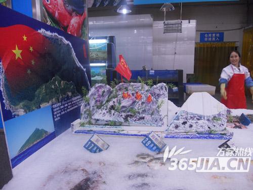 9月17日,记者根据网友提供的线索,来到了位于合肥长江西路上的合家福,在超市的生鲜区碰到了正在给生鲜区货台上增添冰块,但并未发现网友照片中的钓鱼岛形状上插了五星红旗的装扮。