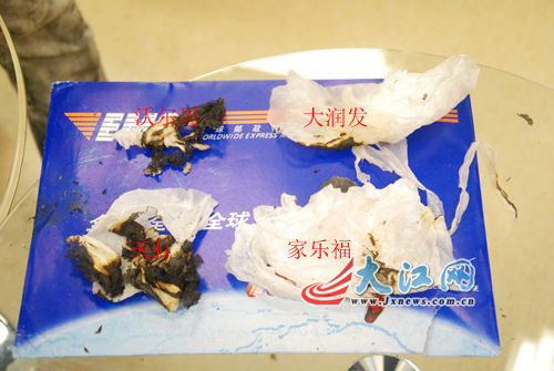 之后记者又开始第二步实验,将盒中的猪肉都取出,用纸巾分别外包四块猪肉,不到5秒时间,在家乐福、大润发购买的猪肉将纸巾很快湿透,而在天虹与沃尔玛购买的猪肉只有部分水印印在纸上,为了辨别手纸吸的是水还是油,记者再用打火机分别点燃纸巾,其中裹有家乐福、大润发出售的猪肉的纸巾不能燃烧,而包裹沃尔玛、天虹出售的猪肉的纸巾依然可以燃烧。