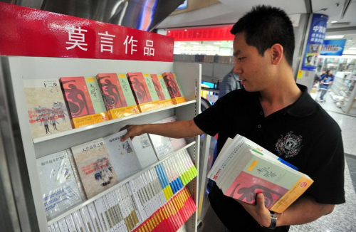 10月11日,北京王府井书店,一位先生购买了5本莫言的书。