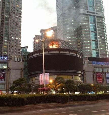 今晚17:30时许,位于中山公园附近的光一百货大楼顶楼脚手架着火,据现场目击者称,火势一度较大,可见火苗从脚手架中窜出。