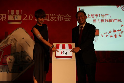 (1号店董事长于刚与1号店形象代言人海清共同启动“无限1号店”)