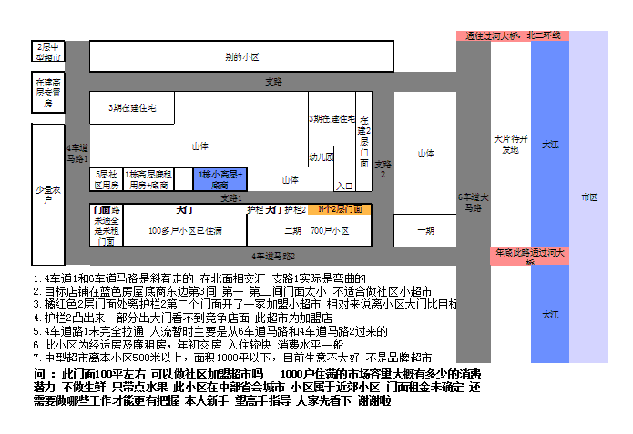 -------理论原话:住宅区,至少须有1000户以上。即便不够1000户,总得有四五百户为好,再低真的不好做。现在区区百十来户会给前期经营带来极大的困难,人少带来的困难是多方面的,不一一细说了。