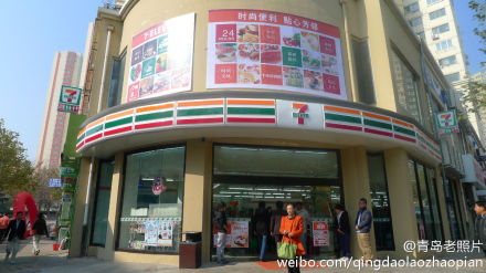 @青岛老照片:青岛的第一家SEVEN-ELEVEN在西镇开业了,在金田公寓楼下,这里曾经是法宝超市,后来改成农贸市场,再后来一直闲置。今天试营业,貌似很火爆,把便利店做成一种“潮流”,不得不佩服。 (来源:青岛网络电视台)