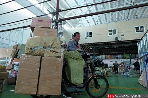 上午十点多,我们接到一家网店客户的电话,催促我们快去取货。走进这家网店,只见货品堆满了门道走廊,店主王女士告诉我,她昨夜一宿未睡,不停的接单对单,今天凌晨4时左右开始包装,因为单量太多,她将家人全部发动起来打包,就这样还是跟不上下单的速度。王女士告诉我,今年双十一她的网店流量比平时上涨了近80倍,单量是平时的十倍左右,但是利润却并不多。